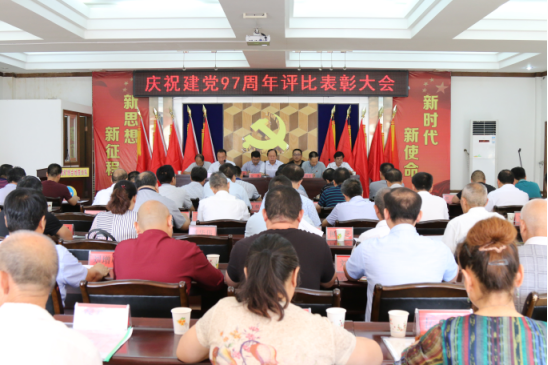 7月1日,公司在地质科研楼二楼召开庆祝建党97周年评比表彰大会。公司党委副书记、总经理王凯同志主持会议。公司领导、部门、二级实体主要负责人、受表彰人员70余人参加会议。